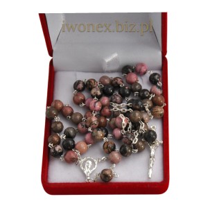 - Bransoletka różaniec z kamienia naturalnego Agat Wstęgowy Fuksja -modlitwa w zasięgu ręki