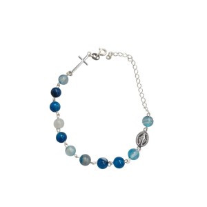 Bransoletka z Agatu Wstęgowego Błękitny na Srebrze