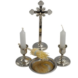 Etui na różaniec komunijne czarne na zamek – I Komunia Święta, kielich IHS